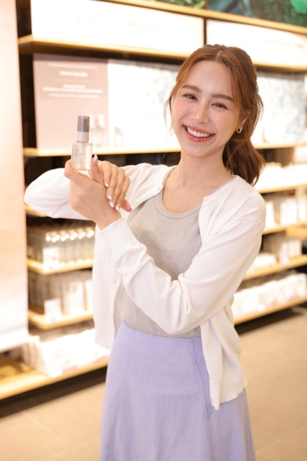 ด้านนักแสดงสาว พีพี-ปุญญ์ปรีดี คุ้มพร้อม รอดสวาสดิ์ มาร่วมเผยเคล็ดลับการดูแลผิวในชีวิตประจำวัน เพื่อให้ผิวสวยสุขภาพดีอย่างยั่งยืน และเผยถึงความประทับใจต่อผลิตภัณฑ์ของมูจิว่า “ปกติเราเป็นคนที่ใส่ใจเรื่องการดูแลผิวมากๆ เพราะด้วยอาชีพนักแสดงของเราที่ต้องแต่งหน้าทุกวัน เดินทางบ่อย เผชิญกับแสงไฟและแสงแดด เรื่องความชุ่มชื้นผิวจึงเป็นสิ่งที่ให้ความสำคัญมาก เพราะเป็นเหมือนพื้นฐานที่จะช่วยให้ผิวแข็งแรง พอได้ลองสกินแคร์ใหม่ของมูจิแล้วชอบมาก เพราะโดยส่วนตัวเป็นคนเลือกใช้ผลิตภัณฑ์ที่อ่อนโยนต่อผิวอยู่แล้ว และยิ่งรู้ว่าเป็นส่วนผสมจากธรรมชาติ 100% ก็ยิ่งรู้สึกสบายใจเวลาใช้ เนื้อสัมผัสของก็บางเบา ซึมไว ไม่เหนอะหนะ แล้วกลิ่นก็เป็นธรรมชาติแบบไม่ปรุงแต่งเลย ช่วยให้รู้สึกผ่อนคลาย สิ่งที่ชอบที่สุดคือความใส่ใจในรายละเอียดเล็กๆ น้อยๆ ของมูจิอย่างการเลี่ยงสารเคมีที่อาจก่อให้เกิดการระคายเคือง อย่างพาราเบน แอลกอฮอล์ หรือสีสังเคราะห์ ทำให้รู้สึกมั่นใจว่าใช้ได้ทุกวันโดยไม่ต้องกังวลเรื่องผิวแพ้ ที่ชอบมากๆ อีกอย่างคือบูสเตอร์เซรั่ม พอใช้หลังล้างหน้าแล้วตามด้วยมอยส์เจอร์ไรเซอร์ก่อนนอน ตื่นเช้ามารู้สึกเลยว่าผิวอิ่มน้ำ ผิวแน่นและนุ่มมากๆ ที่สำคัญเซรั่มตัวนี้ไม่ใช่แค่ให้ความชุ่มชื้นเฉยๆ แต่ช่วยให้ผิวดูสดใสขึ้นด้วย เหมือนเป็นตัวช่วยเตรียมผิวให้พร้อมรับการบำรุงในขั้นต่อไป ตอนนี้เลยกลายเป็นไอเท็มประจำที่ใช้ทุกคืนเลยค่ะ”