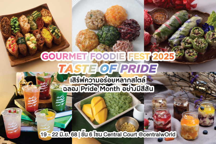 มาร่วมเฉลิมฉลองความหลากหลายและลิ้มรสความอร่อยในเทศกาลอาหาร “Gourmet Foodie Fest 2025 : Taste of Pride” ที่รวมความอร่อย ความสุข และสีสันแห่ง Pride ไว้อย่างครบครัน พร้อมกิจกรรมสนุกตลอดทั้งวัน ในระหว่างวันที่ 19-22 มิถุนายน 2568 เวลา 10.00-22.00 น. ณ Central Court ชั้น 6 ศูนย์การค้าเซ็นทรัลเวิลด์