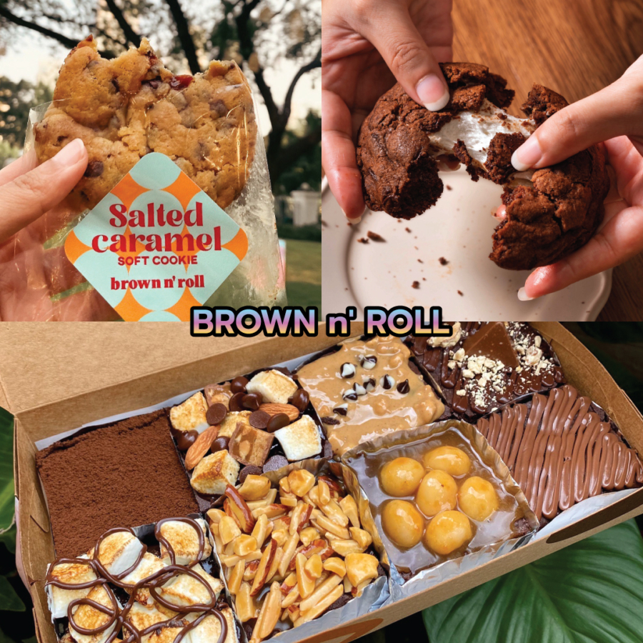 ร้าน BROWN n’ ROLL เมนูบราวนี่โฮมเมดหลากหลายรสชาติ และซอฟต์คุกกี้เครื่องแน่นให้เลือกหลายรสชาติ ทุกชิ้นใช้ช็อกโกแลตคูเวอร์เจอร์แท้ และเนยฝรั่งเศส ปราศจากไขมันทรานส์