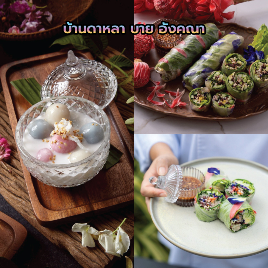 ร้านบ้านดาหลา บาย อังคณา โดยเชฟแอนนี่-อังคณา เจ้าของร้าน กับเมนู Thai Rainbow Garden Roll เอาใจสายสุขภาพอร่อยแบบมีสีสัน ได้กลิ่นอายปักษ์ใต้ และเมนูขนมโค (สายรุ้ง) ในน้ำกะทิ ที่แป้งข้าวเหนียวเนื้อนุ่มหนึบ สอดไส้มะพร้าวหวานมัน ราดด้วยกะทิ อบควันเทียนสุดเข้มข้น