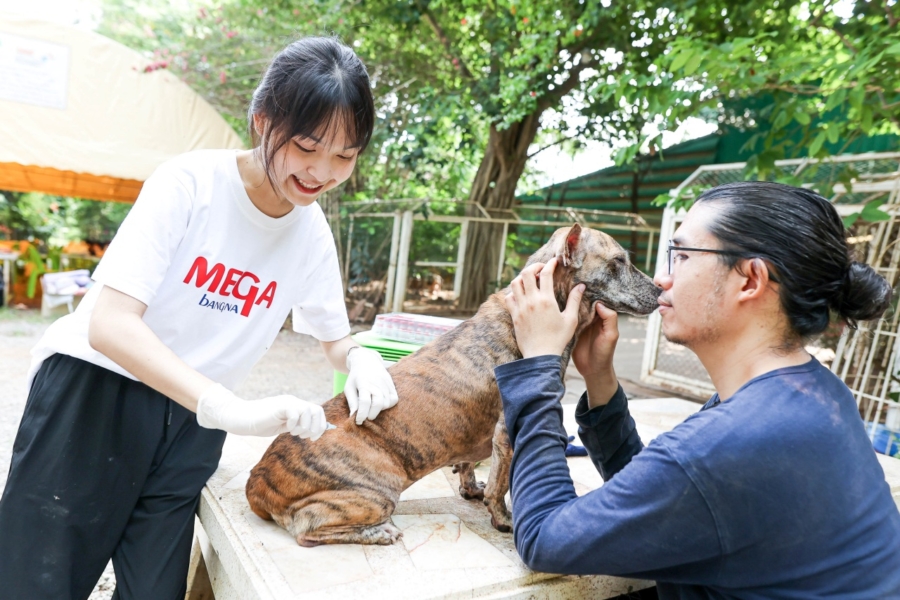 วัคซีนจำนวนนี้ถูกรวบรวมผ่านกิจกรรม “PAWSOME GREEN RUNNING HERO” ภายในงาน “MEGA PET DAY 2025 : PAWSOME GREEN HERO ฮีโร่สี่ขา พาช่วยเพื่อน” ที่จัดขึ้น ณ สวนเมกา พาร์ค โดยเมกาบางนาร่วมมือกับ โครงการค่ายอาสาควบคุมและป้องกันโรคพิษสุนัขบ้า คณะสัตวแพทยศาสตร์ มหาวิทยาลัยเกษตรศาสตร์ ชวนเจ้าของและน้องหมามา “เดินสะสมก้าว” เพื่อนำไปแลกเป็นวัคซีนสำหรับสุนัข ที่อาศัยอยู่ในชุมชนบ้านนางฟ้า อ. มวกเหล็ก จ.สระบุรี ซึ่งมีจำนวนกว่า 1,000 ตัวที่รอความช่วยเหลือ ทั้งนี้ชุมชนบ้านนางฟ้า เป็นที่พำนักของสัตว์เลี้ยงที่ถูกทอดทิ้งจำนวนมาก ดำเนินการโดยอาศัยการดูแลจากจิตอาสาและการบริจาคจากภาคเอกชนและประชาชนทั่วไป การสนับสนุนในครั้งนี้จะช่วยยกระดับคุณภาพชีวิตของสัตว์เหล่านี้ให้ได้รับวัคซีนอย่างทั่วถึง การสนับสนุนในครั้งนี้จะช่วยยกระดับคุณภาพชีวิตของสัตว์ที่ขาดโอกาสให้ได้รับวัคซีนอย่างทั่วถึง พร้อมลดความเสี่ยงของการแพร่ระบาดของโรคพิษสุนัขบ้าในชุมชน ที่สำคัญยังเป็นการส่งต่อความห่วงใยจากเมกาบางนาให้กับสัตว์เลี้ยงที่ถูกทอดทิ้ง ช่วยสร้างสภาพแวดล้อมที่ปลอดภัย อบอุ่น และน่าอยู่สำหรับทั้งคนและสัตว์เลี้ยง