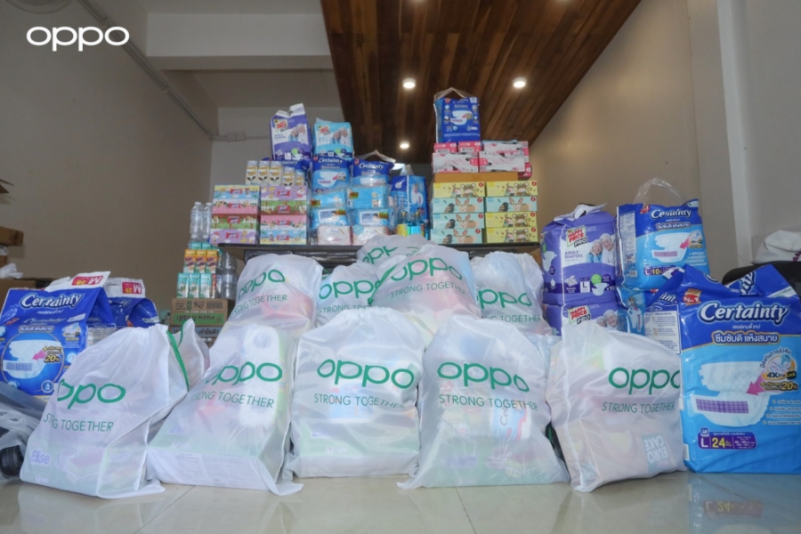 ด้วยความมุ่งมั่นที่พร้อมจะอยู่เคียงข้างประชาชนในทุกสถานการณ์ ออปโป้ ประเทศไทย ได้จัดเตรียมสิ่งของจำเป็น อาทิ น้ำดื่ม นม น้ำผลไม้ หน้ากากอนามัย ถุงมือแพทย์ แอลกอฮอล์ กระดาษทิชชู่เปียก ผ้าอ้อมผู้ใหญ่ และกระดาษทิชชู่ เพื่อสนับสนุนทั้งบุคลากรด่านหน้าในการปฏิบัติงาน และบรรเทาความเดือดร้อนของประชาชนในพื้นที่