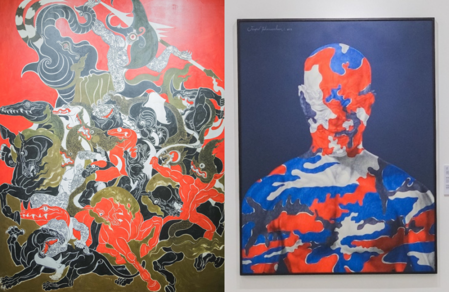 ผลงานไฮไลท์ในการประมูล “Vernissage” ถวัลย์ ดัชนี BATTLE OF MARA มารผจญ (2514) สีน้ำมันบนผ้าใบ ขนาด 200 x 150 ซม. พร้อมใบรับรอง