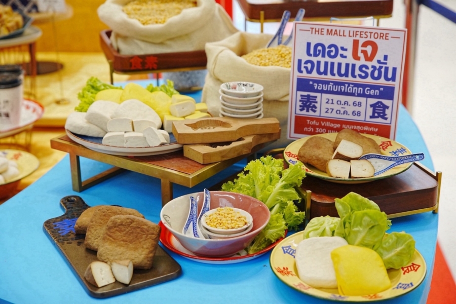 โดยปีนี้พิเศษสุดที่เดอะมอลล์ ไลฟ์สโตร์ บางกะปิ กับการเปิดตัวครั้งแรกในประเทศไทย “TOFU VILLAGE” สวรรค์ของคนรักเต้าหู้ ที่รวบรวมเมนูอาหารและสินค้าที่ผลิตจาก “เต้าหู้” คุณภาพกว่า 800 รายการ ในคอนเซ็ปต์ “จากทรงวาดสู่บางกะปิ” สร้างประสบการณ์ “Traditional x Modern” อย่างลงตัว พร้อมสารพันเมนูพิเศษจากเต้าหู้ที่ไม่ควรพลาด อาทิ TOFU BAR ไอศกรีมเจลาโต้บาร์ จาก AZABU SABO แบรนด์ไอศกรีมต้นตำรับจากญี่ปุ่น, สเต็กเต้าหู้กับเห็ดผัดซอสดาชิ จาก TENNEN TOUFU, เต้าหู้ทอดผัดเห็ด 6 ชนิด จาก HUNZA Healthy and Balance รวมถึงเมนูเจจากร้านดังต้นตำรับกว่า 300 เมนู อาทิ ปอเปี๊ยะเจ ร้านแม่ศรีเรือน , เผือกทอด จากภัตตาคาร ซิลเวอร์ พาเลซ , ร้านขนมแม่จากเชียงใหม่ รวมถึงเครื่องดื่มและขนมจาก วาซูกะ ชาพรีเมียม โตเกียว ที และวาราบิ โมจิ ดังโงะ เนริกิริ จาก ไฮเด้น ลีฟ มัจฉะ ฯลฯ