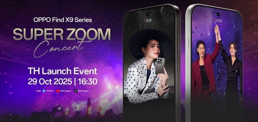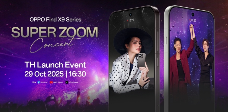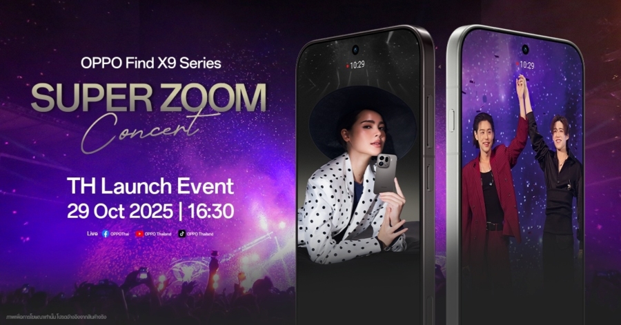 ออปโป้ ประเทศไทย เตรียมเปิดตัว OPPO Find X9 Series สมาร์ตโฟนแฟลกชิปซูมดีทุกคอนเสิร์ต พร้อมเตรียมพบกับประสบการณ์ความชัดระดับแฟลกชิปจาก OPPO กับงาน “Super Zoom Concert” คอนเสิร์ตครั้งใหญ่ที่รวมความบันเทิงและเทคโนโลยีเข้าไว้ด้วยกันอย่างลงตัว เพื่อเฉลิมฉลองการเปิดตัวสมาร์ตโฟนรุ่นใหม่ล่าสุด OPPO Find X9 Series สมาร์ตโฟนแฟลกชิปที่พร้อมยกระดับการซูมให้ชัดทุกองศา