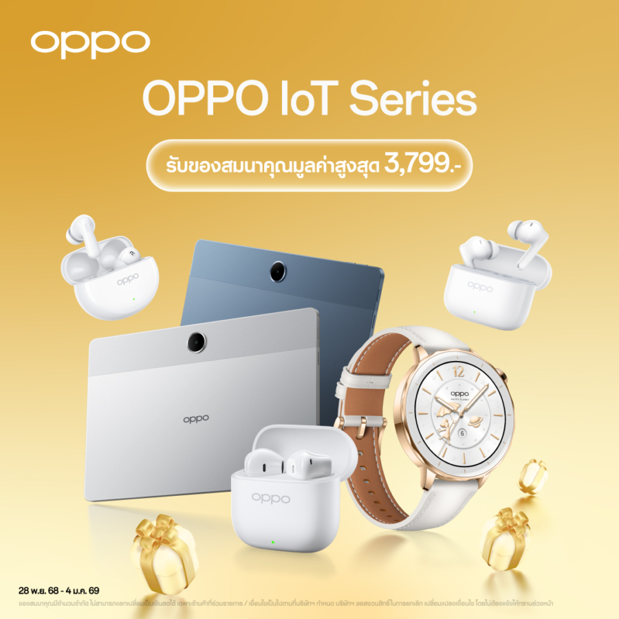 ห้ามพลาด! แล้วมาพบกับโปรโมชันส่งท้ายปีเก่า มอบความสุขด้วยเทคโนโลยีสุดล้ำที่เลือกได้ ผ่านแคมเปญ “New Year New Phone” ให้คุณเป็นเจ้าของสมาร์ตโฟนและอุปกรณ์ IoT จาก OPPO ได้ในราคาสุดคุ้ม ตั้งแต่วันที่ 28 พฤศจิกายน 2568 นี้ ถึง 4 มกราคม 2569 ที่ OPPO Brand Shop และตัวแทนจำหน่ายทั่วประเทศ