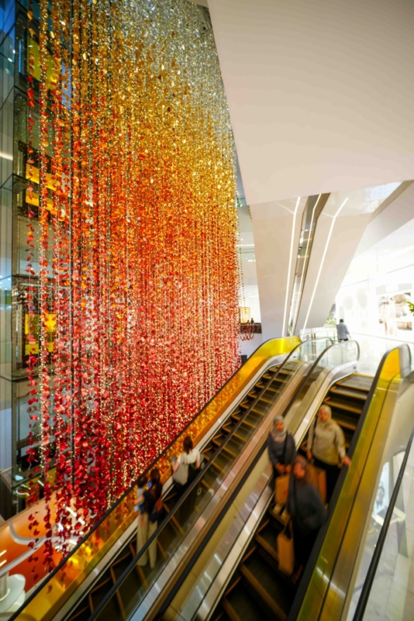 จุดที่ 3 สัมผัสมนต์เสน่ห์ของม่านคริสตัลไล่เฉดสีทองระยิบระยับตกแต่งอย่างประณีตแสงสะท้อนเล่นสีตลอดทั้งวัน เรียงร้อยแขวนยาวลงมา ตั้งแต่ชั้น 4 ศูนย์การค้า เอ็มควอเทียร์ จรดยาวลงมาถึงชั้น G
