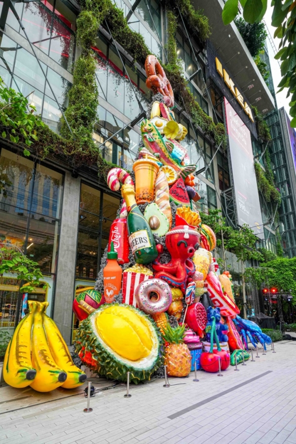 จุดที่ 2 ต้นคริสต์มาสแฟนตาซีที่ได้แรงบันดาลใจจากของตกแต่งวินเทจยุค 1950 – 1960 ที่รังสรรค์ถึงความเป็นศูนย์รวมไลฟ์สไตล์ แลนด์มาร์คที่ทุกคนต้องมาลิ้มลองรสชาติของสุขุมวิทผ่านอาหารต่างๆ เป็นตัวแทนความสุขและการเฉลิมฉลองเทศกาลในปีนี้ บริเวณด้านหน้าศูนย์การค้าเอ็มสเฟียร์