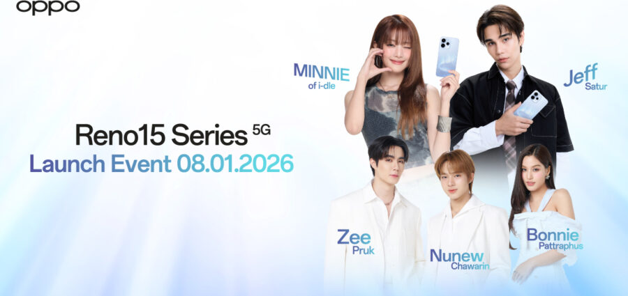 OPPO เตรียมสร้างโมเมนต์ใหม่ต้อนรับปี 2026 กับงานเปิดตัวอย่างเป็นทางการของสมาร์ตโฟนรุ่นล่าสุด OPPO Reno15 Series 5G สมาร์ตโฟนเพื่อนซี้ เทรนดี้ทุกช็อต ครบจบในเครื่องเดียว ที่พร้อมเป็นเพื่อนคู่ใจให้ทุกโมเมนต์โดดเด่นยิ่งขึ้น ผ่านเทคโนโลยีล้ำสมัยผสานกับดีไซน์สุดเทรนดี้ พร้อมยกระดับทุกการถ่ายภาพและวิดีโอให้โดดเด่นในทุกช็อต พร้อมก้าวไปอีกขั้นด้วยการเปิดตัวพร้อมกับ OPPO Watch S และ OPPO Pad 5 อุปกรณ์อัจฉริยะรุ่นใหม่ล่าสุดที่จะเชื่อมต่อไลฟ์สไตล์สุดสมาร์ตให้สมบูรณ์แบบยิ่งขึ้น ในวันที่ 8 มกราคมนี้