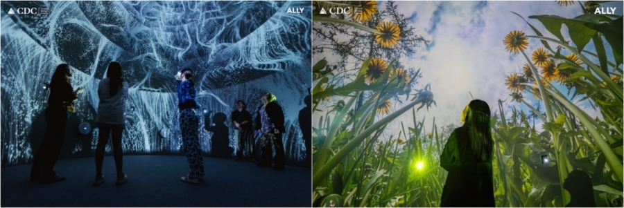 โดม Immersive VR ขนาด 8 เมตร ทำหน้าที่เสมือน “ปอดขนาดใหญ่ใจกลางเมือง” ถ่ายทอดประสบการณ์ Breath of Longevity ผ่านภาพและเสียง 360 องศา ภายใต้คอนเซปต์ Air Bath ซึ่งออกแบบให้เป็น Safe Air Zone สำหรับการหายใจอย่างมีคุณภาพ ตั้งแต่วิกฤติมลพิษทางอากาศ ไปจนถึงการเข้าถึงอากาศบริสุทธิ์ในฐานะสิทธิขั้นพื้นฐานของมนุษย์