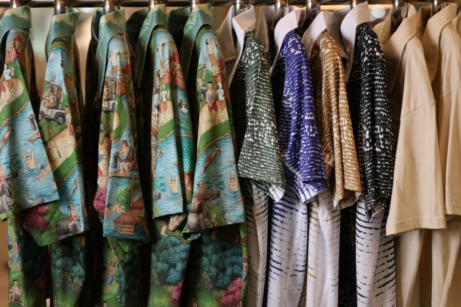 หนึ่งในไอเท็มสำคัญของคอลเลกชันคือ APEX Polo Shirt เสื้อโปโลพิมพ์ลายที่สะท้อนจิตวิญญาณแห่งความขบถต่อวัฒนธรรมกอล์ฟแบบดั้งเดิม ผ่านลวดลายที่เกิดจากความรู้สึกอึดอัดต่อกรอบแฟชั่นกอล์ฟในอดีต เพื่อท้าทายภาพจำของกีฬากอล์ฟที่มักถูกมองว่าเคร่งครัดและยึดติดกับขนบธรรมเนียมเดิม คอลเลกชันนี้จึงตีความโลกของกอล์ฟสำหรับคนรุ่นใหม่ ด้วยสไตล์ที่สง่างามแต่แฝงความกวนอย่างมีชั้นเชิง โดดเด่นด้วยซิลูเอตคมชัด ลวดลายสนุกสนาน และงานตัดเย็บที่ประณีต ขณะเดียวกัน ENTRY Polo Shirt อีกหนึ่งไอเท็มชิ้นสำคัญของคอลเลกชัน ที่ได้รับแรงบันดาลใจจาก “ตัวเงินตัวทอง” สัตว์ที่พบเห็นได้ทั่วไปในสวนสาธารณะและสนามกอล์ฟของประเทศไทย ลวดลายดังกล่าวถูกถ่ายทอดผ่านงานเพนต์ติ้งขนาดใหญ่ ซึ่งเป็นจุดตั้งต้นของกระบวนการออกแบบ ก่อนพัฒนาเป็นหนึ่งในผลงานมาสเตอร์พีซของคอลเลกชันนี้